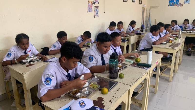 Dampak dari “mesin gizi” yang dijalankan Polda Papua ini terlihat nyata di lapangan. Salah satu titik distribusi, SMP Negeri 1 Jayapura, menjadi saksi keceriaan ribuan siswa saat jam makan siang tiba.